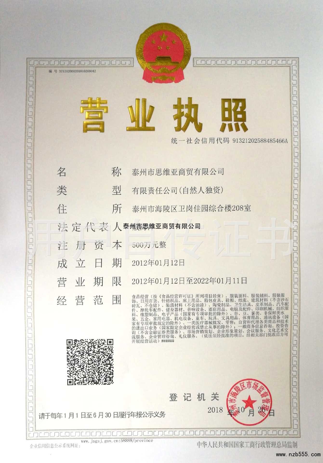 泰州市思維亞商貿有限公司