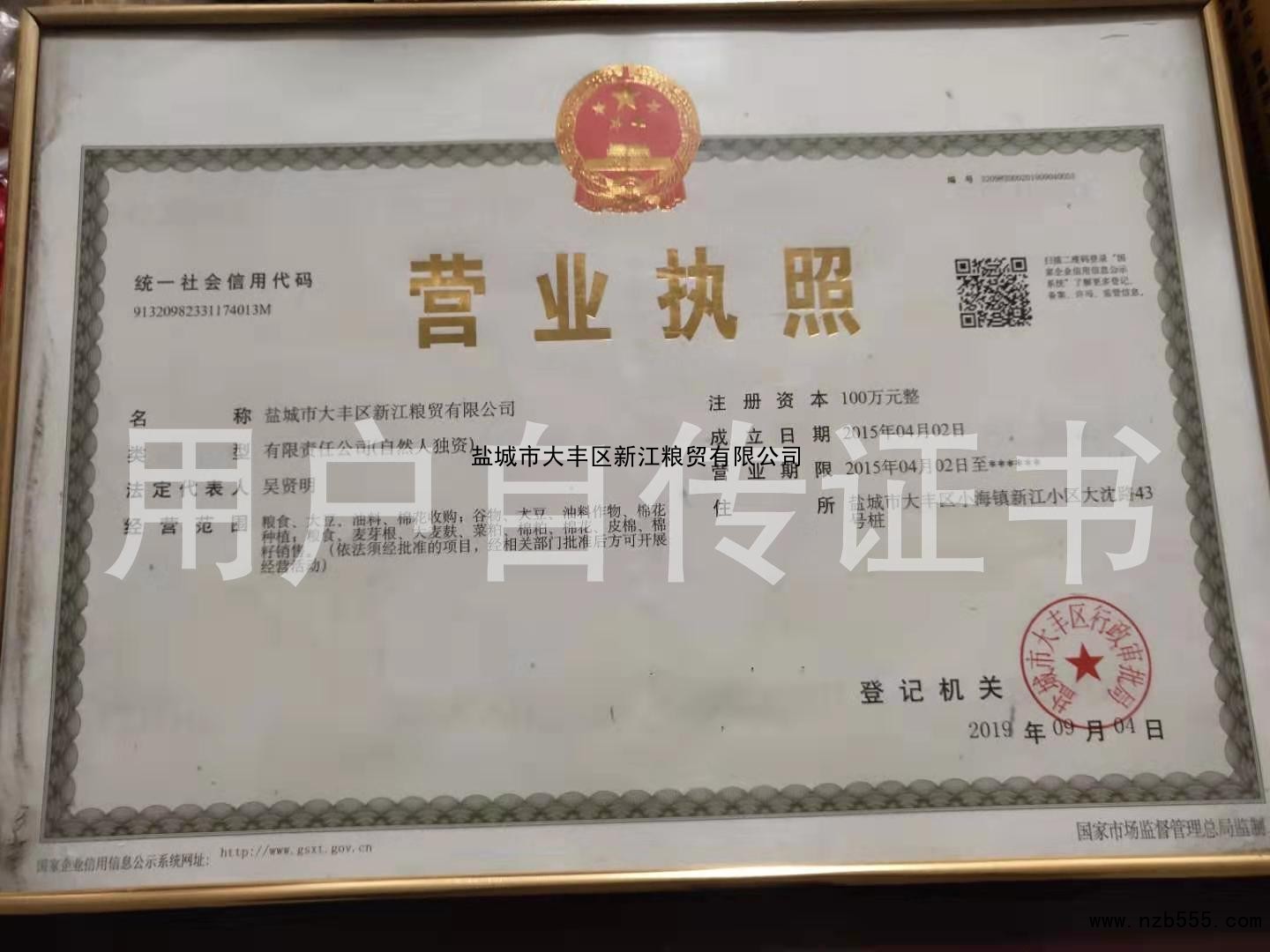 | 發(fā)證機(jī)構(gòu): | 鹽城市大豐區(qū)行政審批局 | 發(fā)證時(shí)間 : | 2019-09-04 |