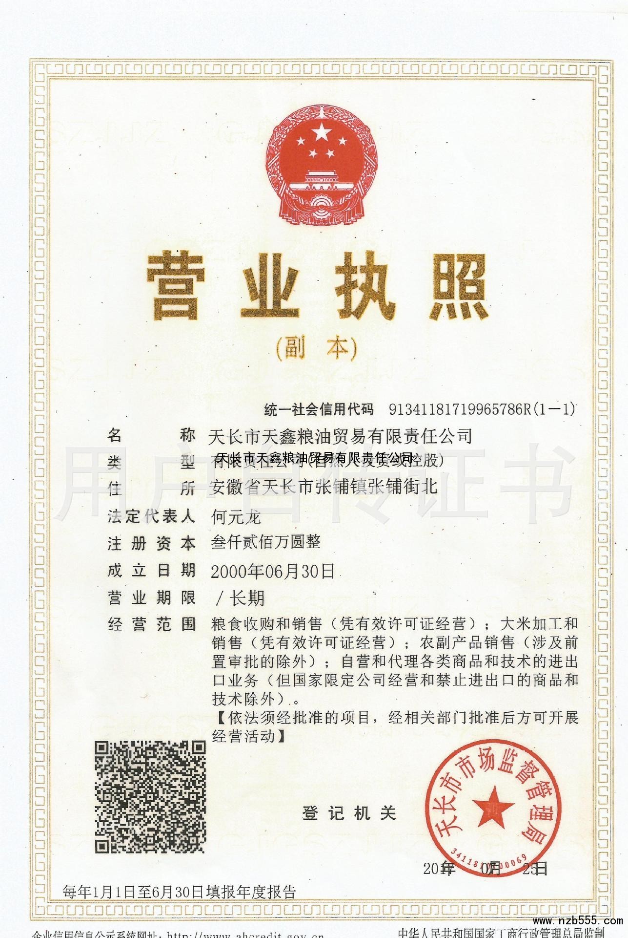 天長市天鑫糧油貿易有限責任公司