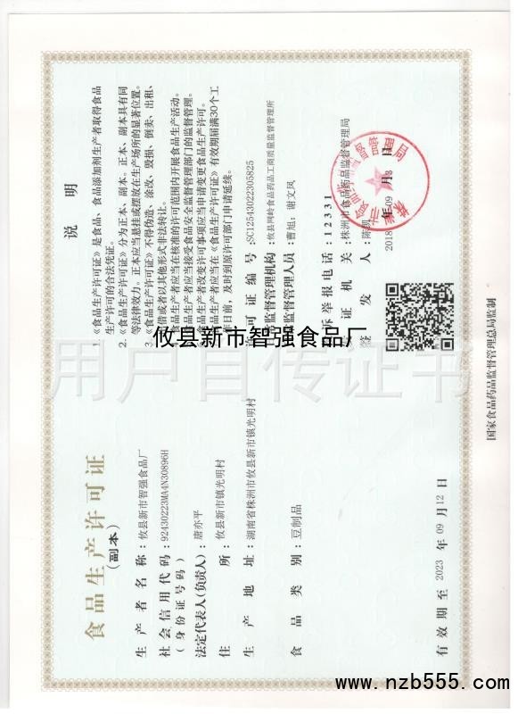 食品生產許可證(除乳制品、嬰幼兒配方乳粉、酒之外的生產許可證)