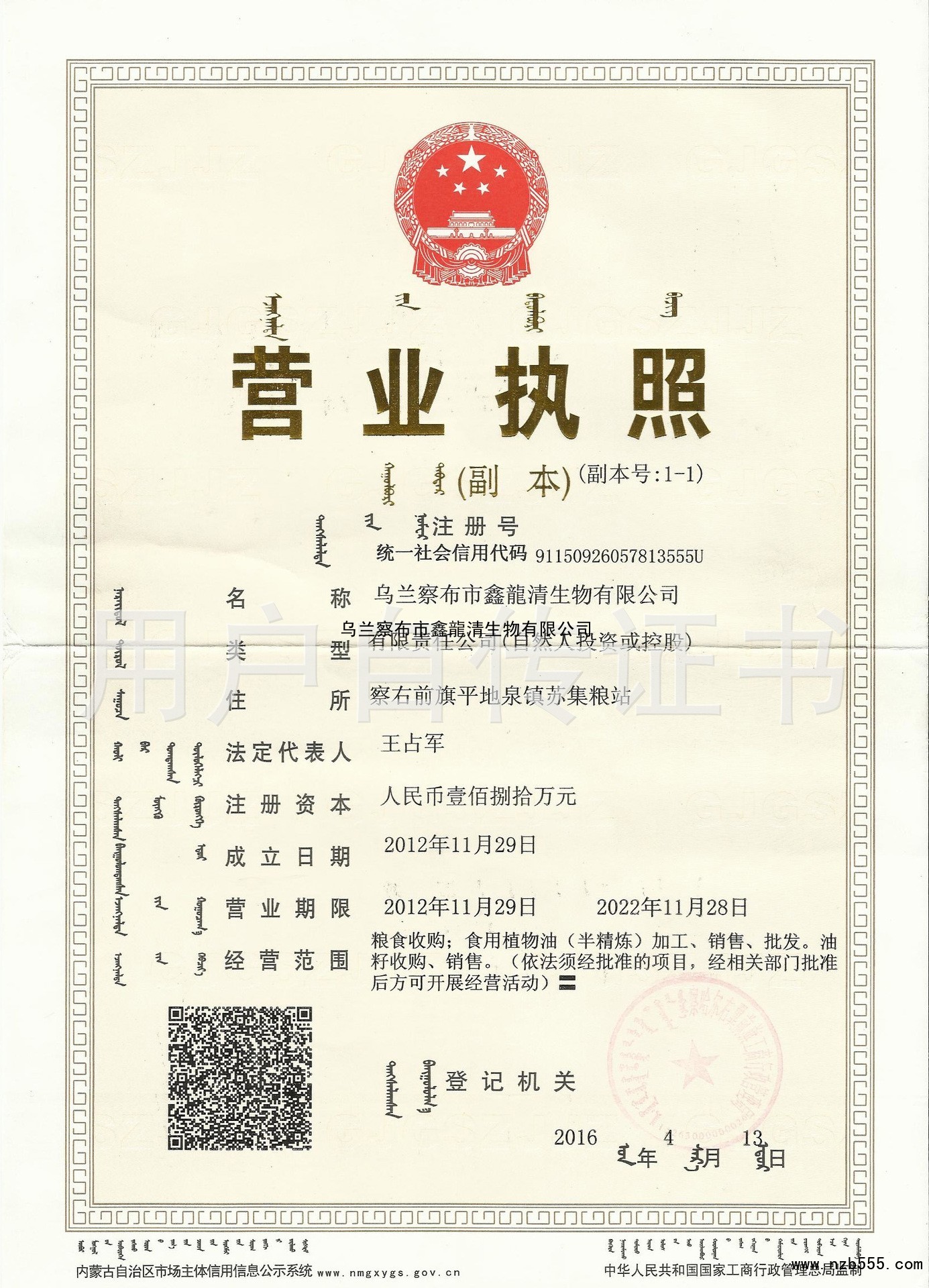 烏蘭察布市鑫龍清生物有限公司