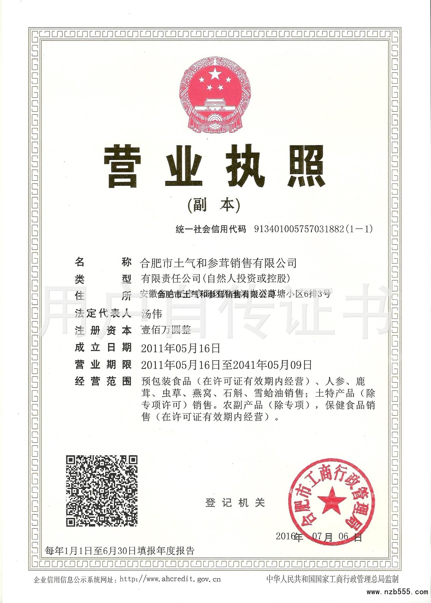 | 發(fā)證機(jī)構(gòu): | 合肥市工商行政管理局 | 發(fā)證時(shí)間 : | 2016-07-06 |