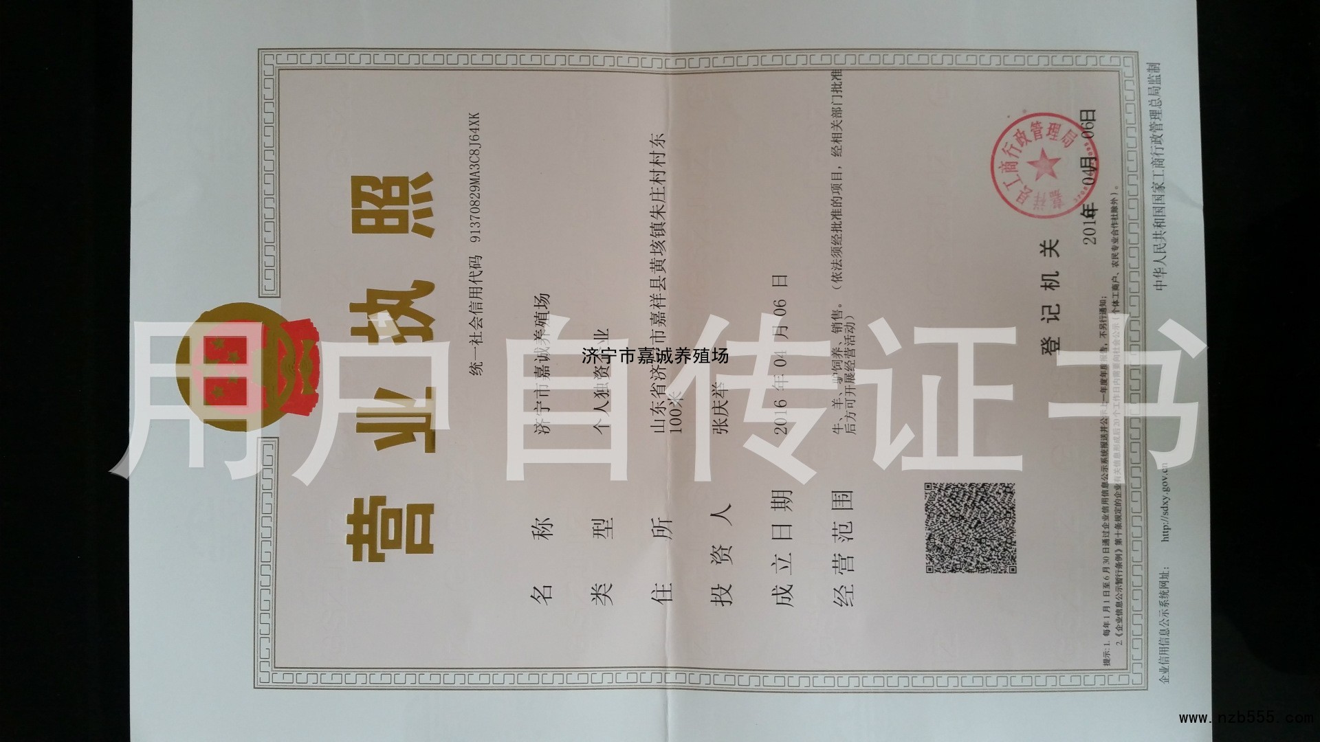 | 發(fā)證機(jī)構(gòu): | 嘉祥縣工商行政管理局 | 發(fā)證時(shí)間 : | 2016-04-06 |