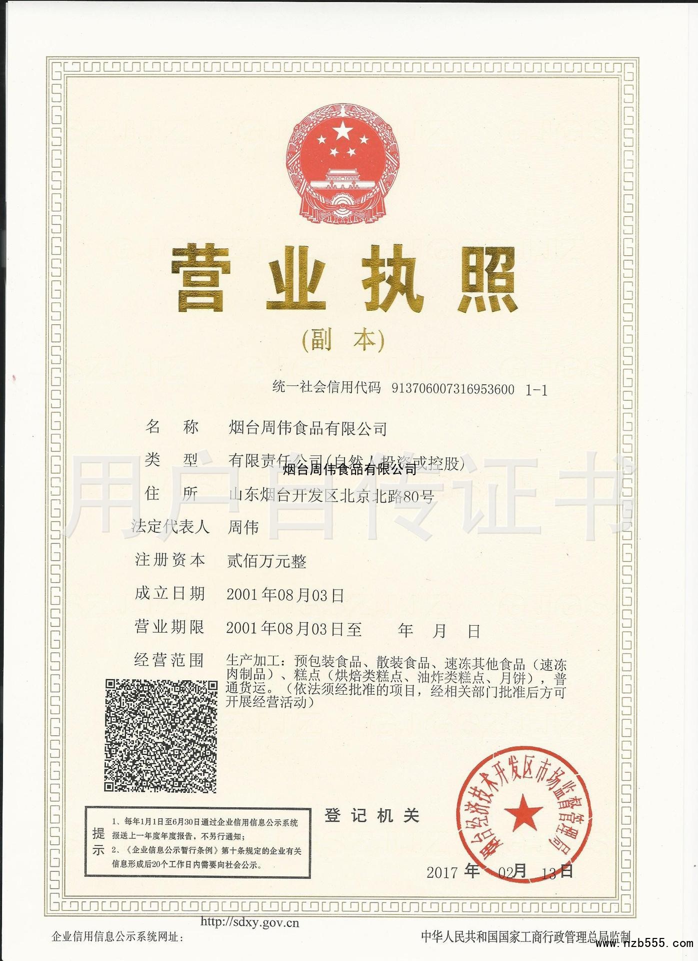 榮譽(yù)資質(zhì) 煙臺(tái)周偉食品有限公司