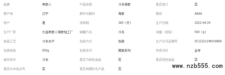 養(yǎng)參人海參工廠真空無冰 大連冷凍即食海參批發(fā)500g