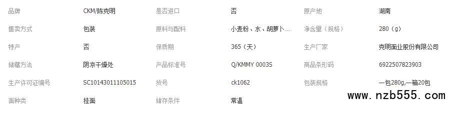 陳克明掛面克明寶寶蔬菜小面280g兒童營養速食易消化面條批發零售
