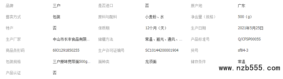 三戶原味寬條面500g寬面拌面炸醬面方便面食非油炸素食面條家庭裝
