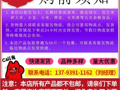 1、本店以批發(fā)為主 ,經營各種五谷雜糧,快速發(fā)貨