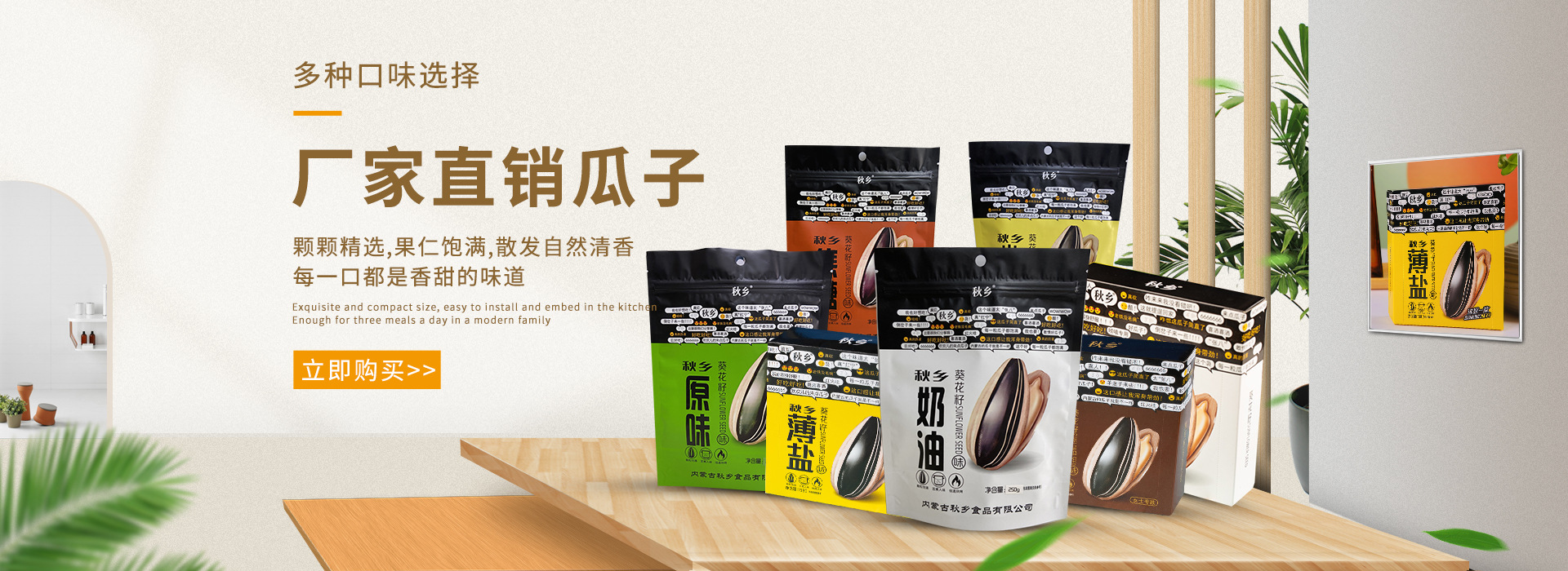 內蒙古秋鄉實業有限公司簡介 公司致力于河套地區優質農產品葵花籽、西瓜籽“產供銷一條龍”貿易,經過20多年的努力拼搏,從原料種植加工創建成地區品牌食品。煮制的黑瓜籽,紅瓜籽,葵花籽系列,以健康,美味的綠色食品為目標,服務國內外市場,是家庭消費,休閑旅游的絕佳食品!歡迎您品嘗、指導 [
