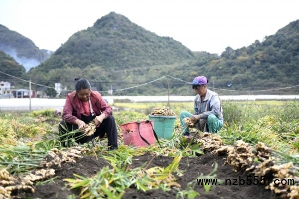 安龍縣棲鳳街道幺塘村種植的600畝生姜成熟采收