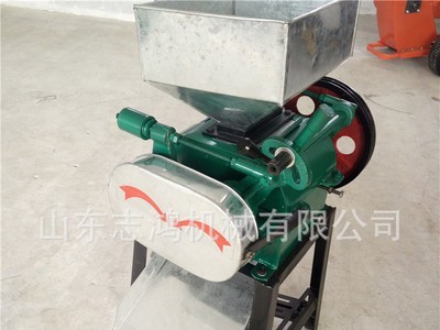 物料通過與本機相配的進料斗由頂部進料口喂入,經錳鋼對輥互相擠壓成為扁狀,從底座出料口排出。機器前段有大螺絲手把可調節糧食物料的厚薄程度,客戶很滿意的口感效果!