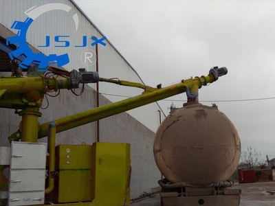 設備由垂直取料頭、螺旋輸送和出料輸送三部份組成。取料頭將物料提升到水平螺旋管中,再落入出料輸送管道中,然后直接進入罐車中。待裝滿2臺罐車后,設備需更換位置重復進行操作!