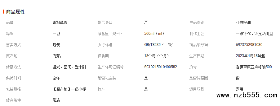 香飄草原亞麻籽油瓶裝